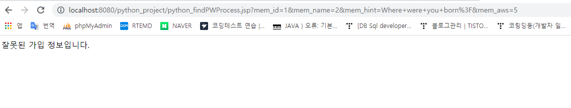 2. python_findPW.jsp에서 id, name, hint, aws 값을 가져온다