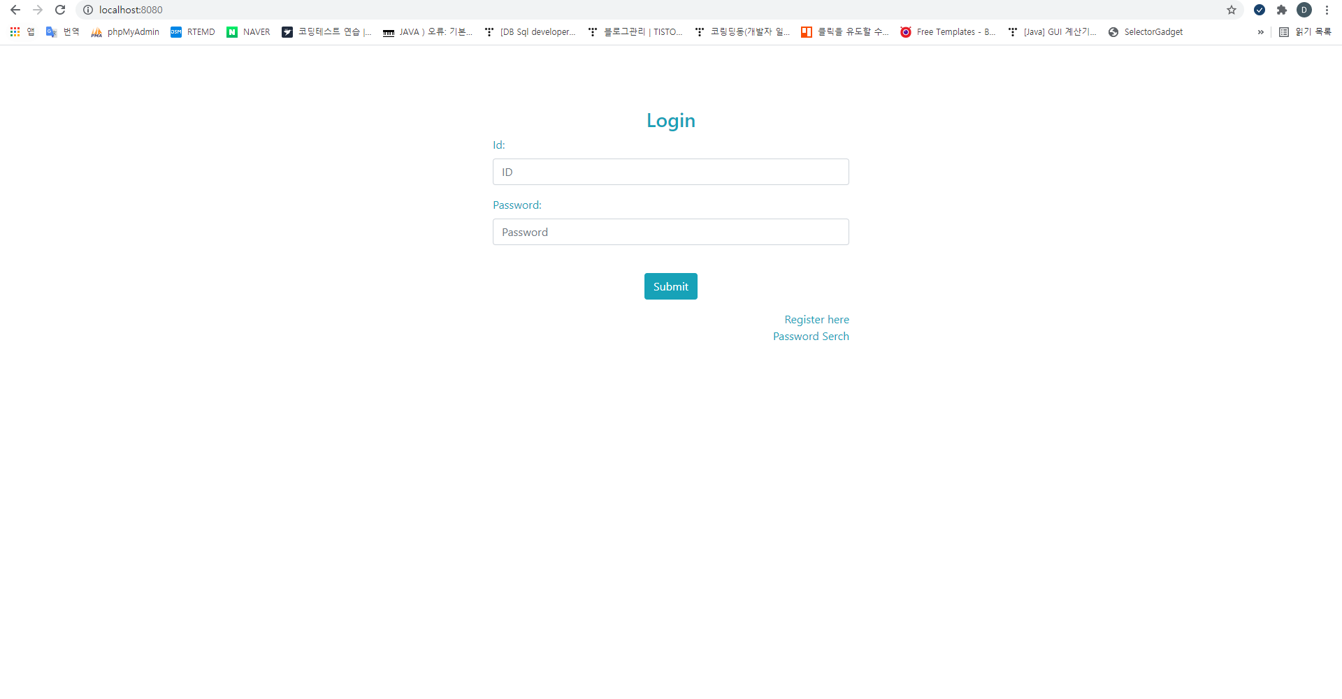 id, password 입력창을 띄우고 submit 버튼을 생성