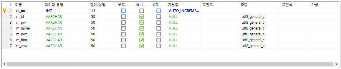연동하기 앞서 member 테이블을 mariaDB에 생성