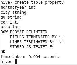 파일을 생성하고 나면 Hadoop/Hive안에 자료를 담을 테이블을 생성해줘야 함