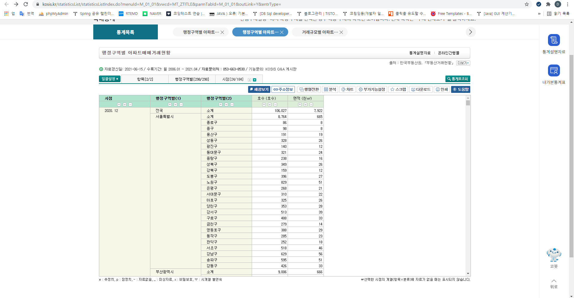 먼저 통계청에서 아파트 거래현황 검색하여 자료 가져오기