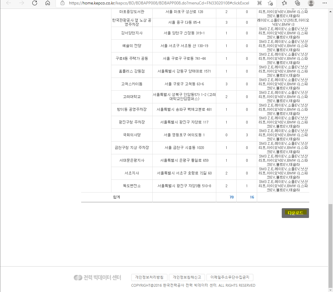 전기차 충전소를 위치를 가지고 있는 데이터를 가지고 Python으로 위도 경도 값을 뽑아와서 파일로 생성하고