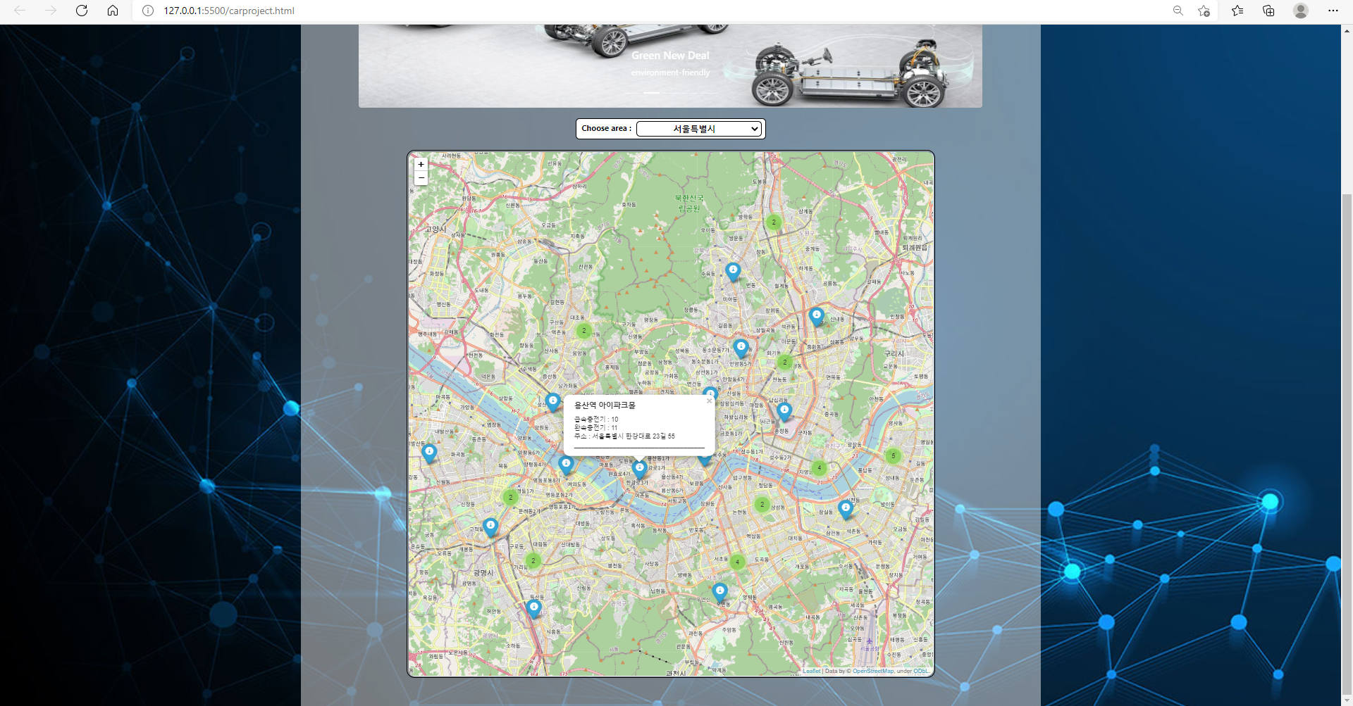 2021/06/30(수) 친구가 전기차를 충전소 위치를 한 번에 볼 수 있는 웹 화면이 있으면 좋겠다고 의견을 냈고 금방 만들 거 같아서 필 받아서 빠르게 만들어 봤다 전기차 충전소를 위치를 가지고 있