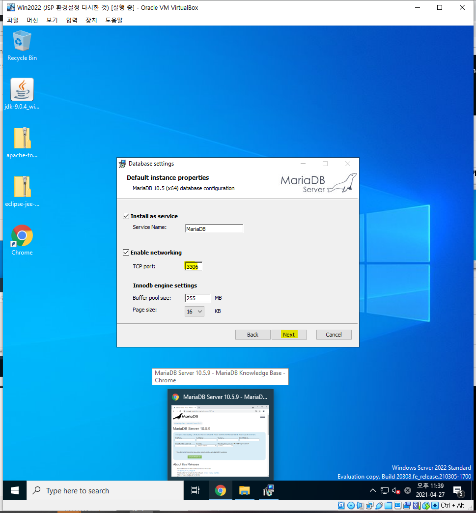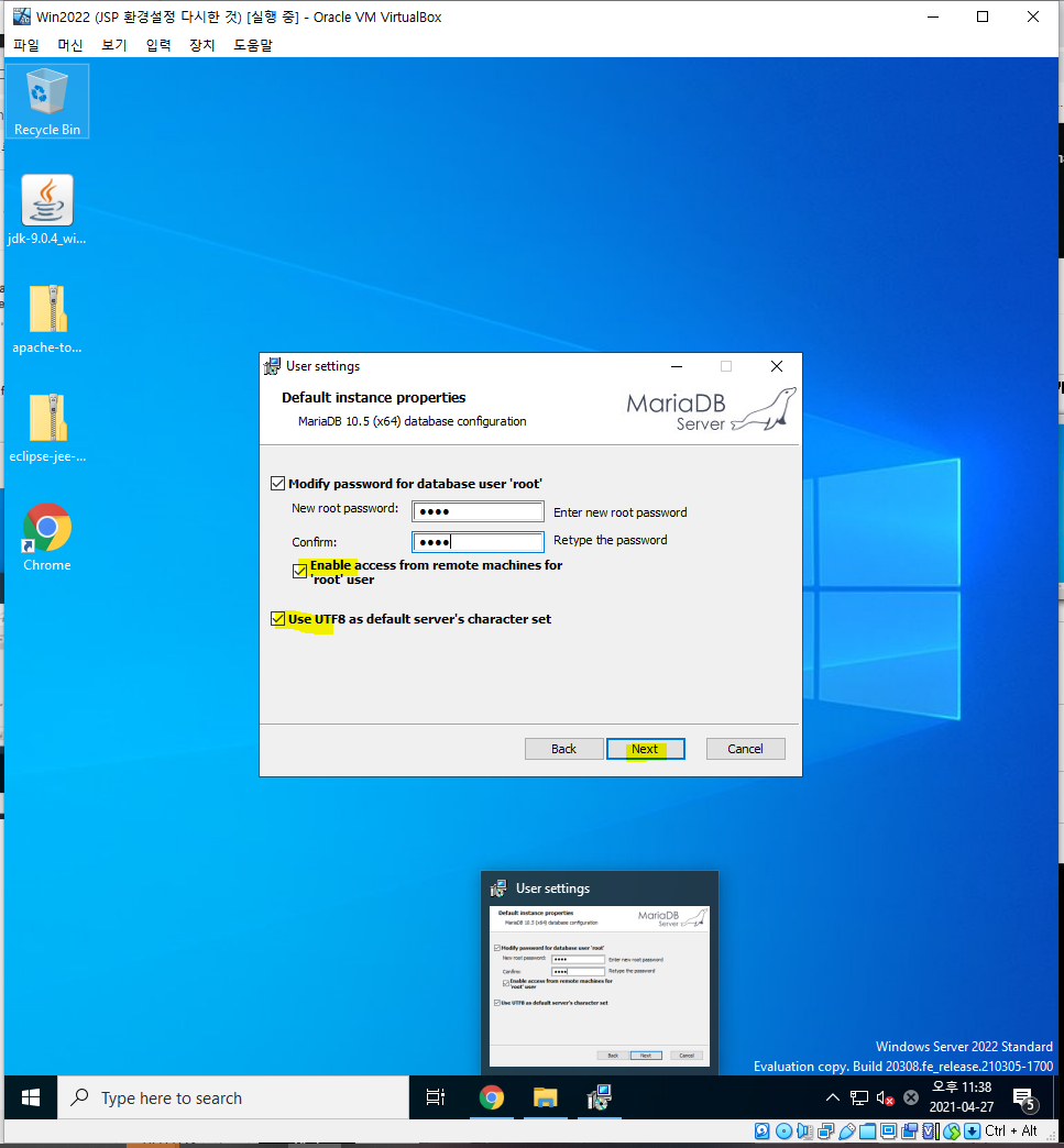 전부 체크하고 가장 상위 root의 비밀번호 설정해주고 기억하기!