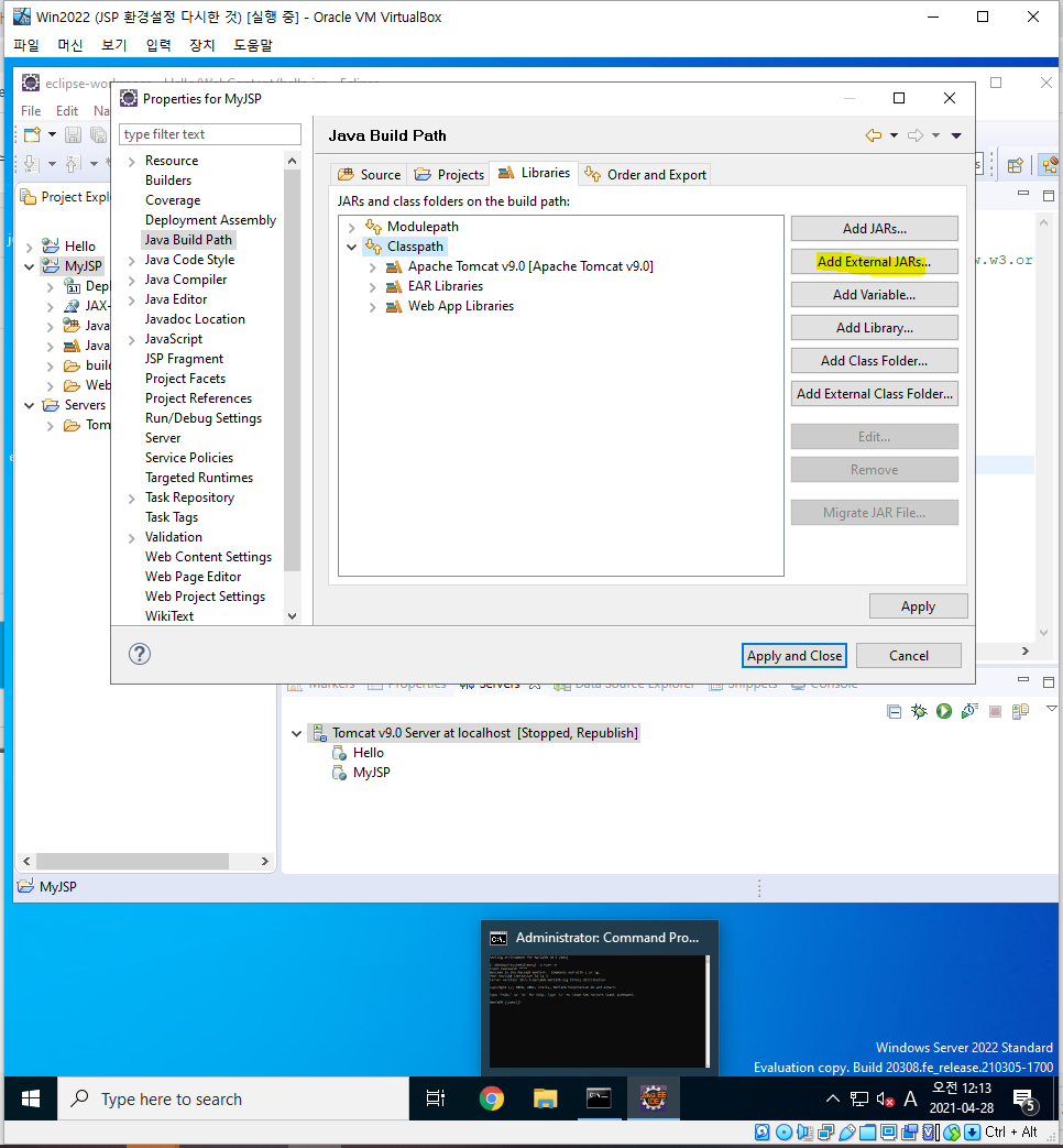 2021/04/26(월) 서론 - 가상머신에서 jsp를 실행할건데 이건 일반 local컴퓨터에서도 하는 설정이 똑같기 때문에 굳이 가상머신이 아니여도 설치할 때 참고하기 좋음 java 환경변수 설정하기 아래 시스